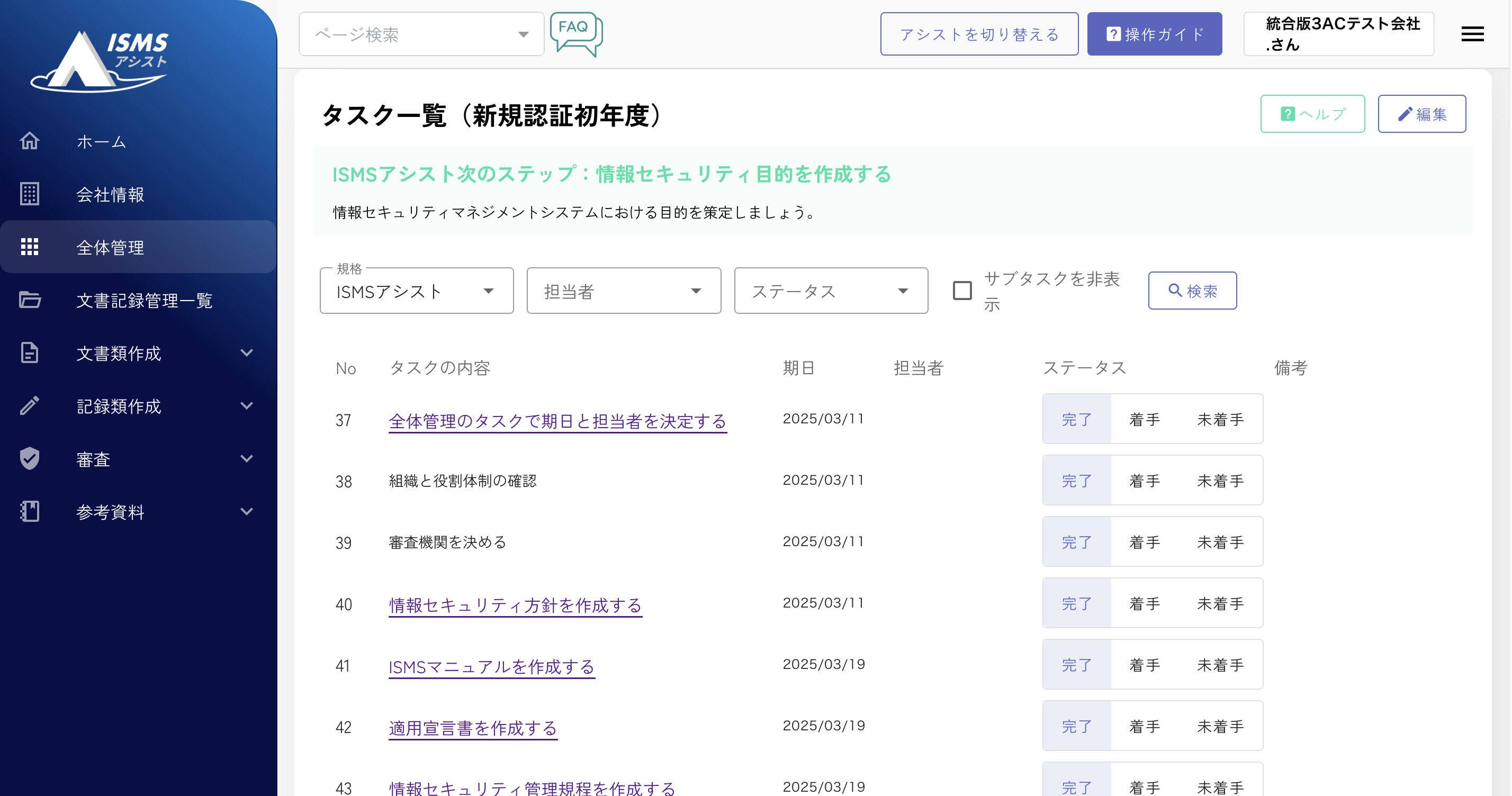 やるべきことのタスクをアシストのステップに沿って進めていけばOK。